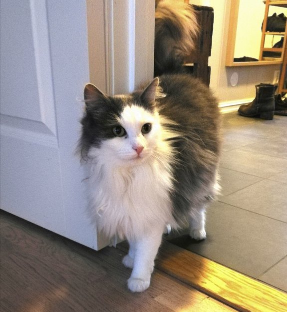 Vi flyttet nylig inn i nytt hus og holdt katten inne for at den skulle tilvennes huset. Den klarte imidlertid å komme seg ut et vindu. Hun er ikke kjent i området.
