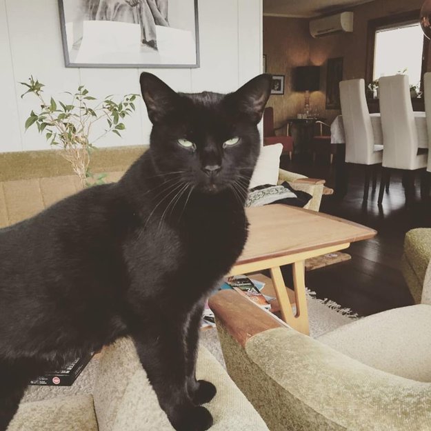 Lazyboy har vært på vandring før. Da fant vi han etter 2 uker på Bieheia (2018). Nå er han eldre, mer kosete og sover mer inne. Han er helt svart i pelsen, med litt grått på hodet. Han mjauer mye. Mulig at han går mot Bieheia igjen.