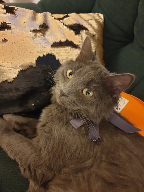 Han kom ikke hjem etter han ble sluppet ut (som han blir daglig)-Den 5/4. Han har vært innom den 13 (bare sett fotsporene i vinduskarmen hvor han "banker" på for å komme inn) vi var desverre ikke hjemme akkurat når han var innom. Har ikke sett noe mer av han siden da.
