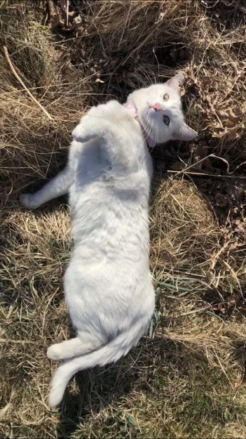 Hun er en hvit katt med rosa halsbånd, men det er mulig at hun har klart å rive det av seg. Hun er også døv. Hun har chip.
