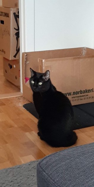 Katten løp ut mens vi dreiv å flyttet. Han har dessverre ikke blitt funnet enda.