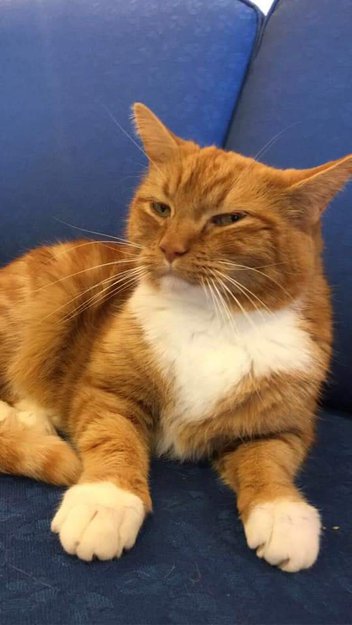 Voksen medium størelse hannkatt. Oransje og hvit.