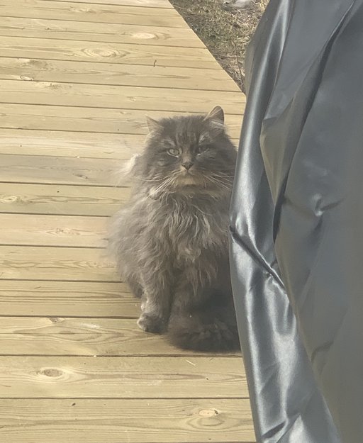 Katt som de siste dagene har begynt å oppholde seg i nærområdet. Veldig sulten, men sky.