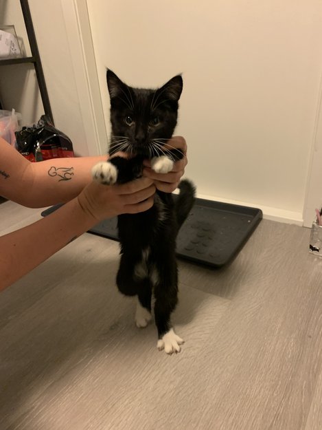 Sort og hvit. Grønne øyne. Ekstremt undervektig! 14-16 uker gammel.