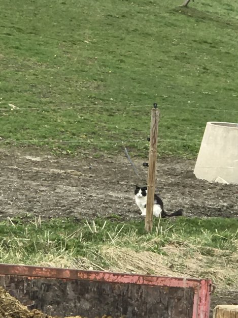 Jager bort andre katter på gården. Virker tam og er veldig kontaktsøkende. Full av tugger i pelsen, ser ukastrert ut. Har vært sett i området her tidligere også.