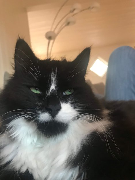 Liten hokatt, snart 2 år. Skipskatt med ekstra klør. Veldig kosete og glad i folk.