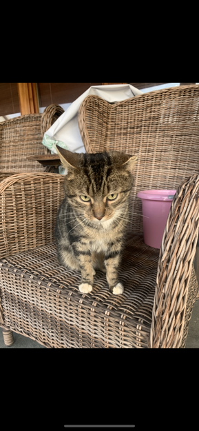 Katt funnet i Alleen, Lyngdal. Har skade på det ene øret. Den har vært her tidligere, men var borte i noen måneder før den kom tilbake for noen uker siden.