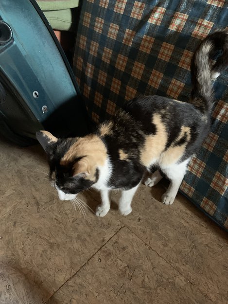 Fant denne katten på loftet over garasjen. Den har oppholdt seg der i flere dager.