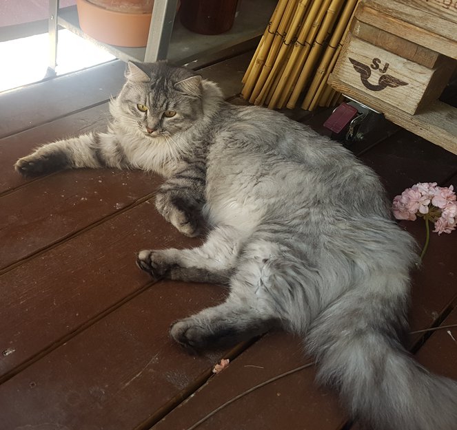 Hun er vant med å være ute og er godt kjent i området og er chippet. Hun er sjelden mere bort enn ca. 3 timer i slengen.
