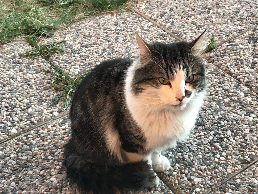 Kan virke som at denne sjarmerende pusen har kommet seg bort, eller er hjemløs. I starten så kom den ofte forbi, men nå oppholder den seg rundt huset her dag og natt.