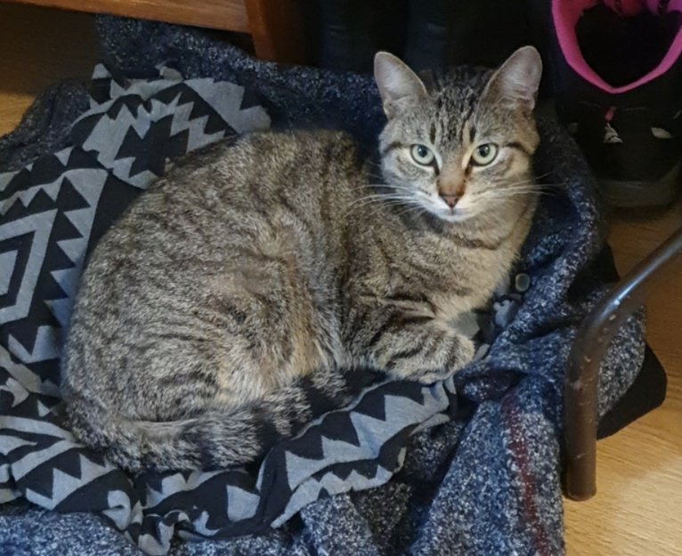 denne lille jenten holdte seg rundt huset mitt på Skjæveland i noen uker før hun kom nærmere nok for meg å få tak i henne rundt 10.04.20 då var hun veldig tynne og sulten så hun fikk varmt sted og mat her.