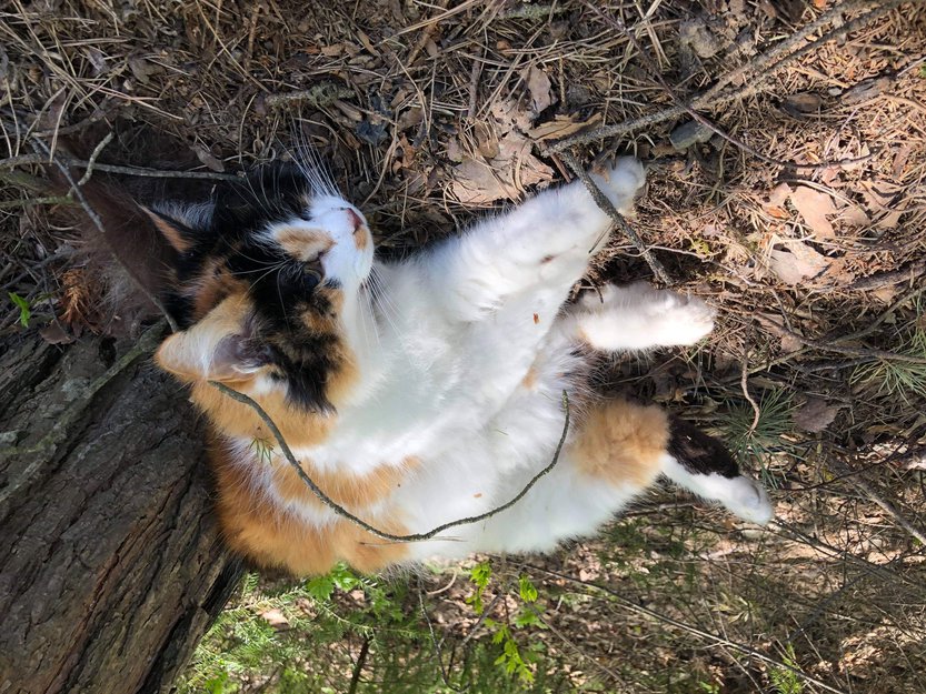 Tricolor langhåret uchippet voksen hunnkatt funnet død v/Bærumsveien like ved Løkeberg skole på Haslum i dag.