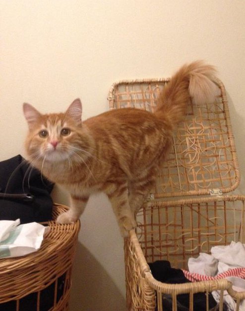 Stor og fyldig hale. Loffen er tre år gammel. Han er chippet i venstre øre og bør være søkbar på dyreID.no.