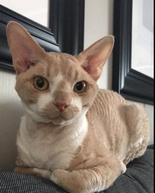 Pelsen er meget kort og har bølger/krøller som er typisk devon rex.