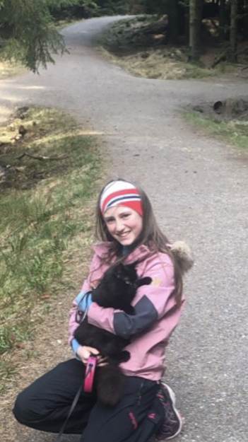 Helt sort å langhåret. Går under navnet Lila å elsker mat, kos å lek
