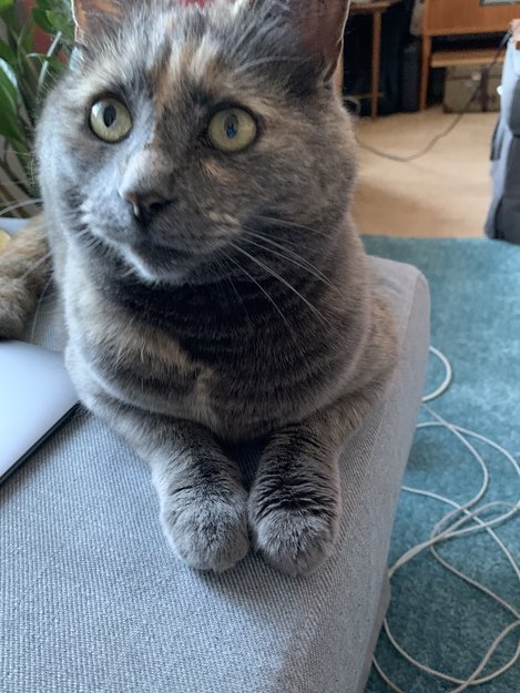 Veldig pratsom og kjærlig. Kommer løpende hvis man roper på henne.