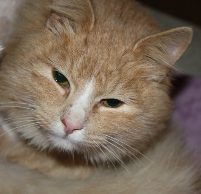 Dessverre ser vi oss ikke i stand til å beholde katten selv, da vi har en 11 år gammel hunnkatt hjemme som er meget sjalu og en typisk "enmannskatt". Håper noen savner den skjønne, snille pusen eller at andre vil gi den et trygt og godt hjem.