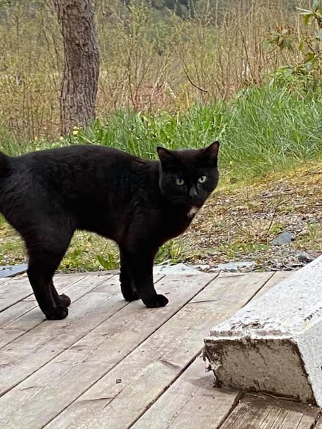 Katten virker sulten og hjemløs. Ungkatt. Mjauer desperat. Har forhørt meg i nabolaget uten å finne eier.