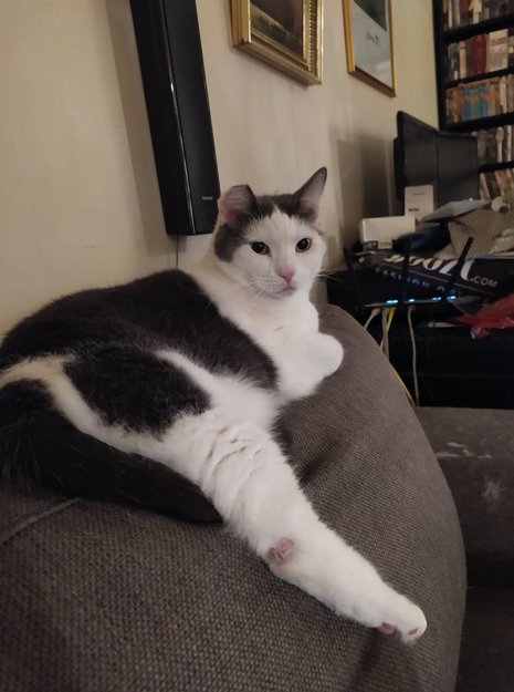 Katten er veldig folkesky, og gjemmer seg når det er ukjente mennesker på besøk.