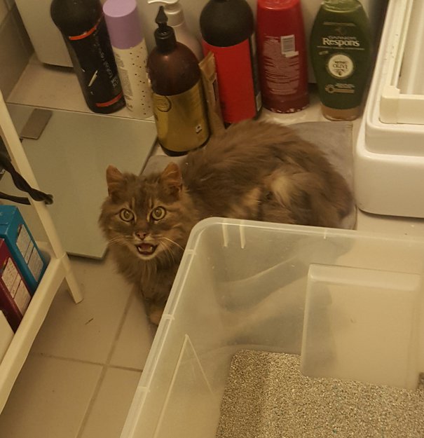 Har gått mellom togene her på Sinsen i 1,5 uke. Ble borte i noen dager og kom tilbake i går. Fikk fanget den i felle siden den er livredd.
