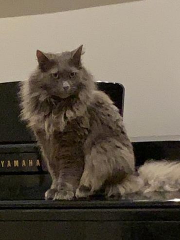Grå/sølvfarget langhåret hannkatt har ikke kommet hjem på to dager. Han oppholder seg alltid i innen nabotomtene og er veldig forsiktig. Han er normalt hjemme/rett utenfor hele døgnet.