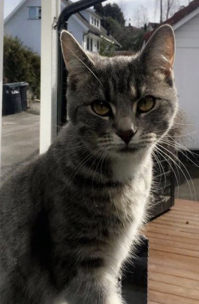 Kosete og snill. Bare ti måneder. Lys og rufsete pels på magen.