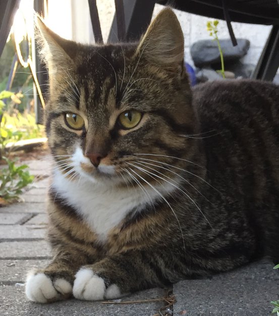 Hannkatt. Trolig en ung katt. Tillitsfull og kontaktsøkende. Har oppholdt seg her en stund.