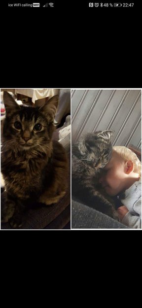 Brutus lyder navnet sitt. Er alltid ute flere ganger om dagen. Kommer alltid hjem. Men denne gangen er han ikke kommet hjem igjen. Har vært ute å lett flere ganger og flere dager. Han kommer fra et hjem som elsker han og tar vare på han. Han ser nok litt lurvete ut nå det pga han er nylig barbert. Langhåret katt. Grå og sort.