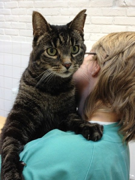 Katten ble funnet på Nasjonalteateret og levert inn på Norges veterinærhøgskole hvor han nå befinner seg. Han halter litt på det ene bakbenet, men er ellers i god form. Han er en veldig kosete og stor pus.