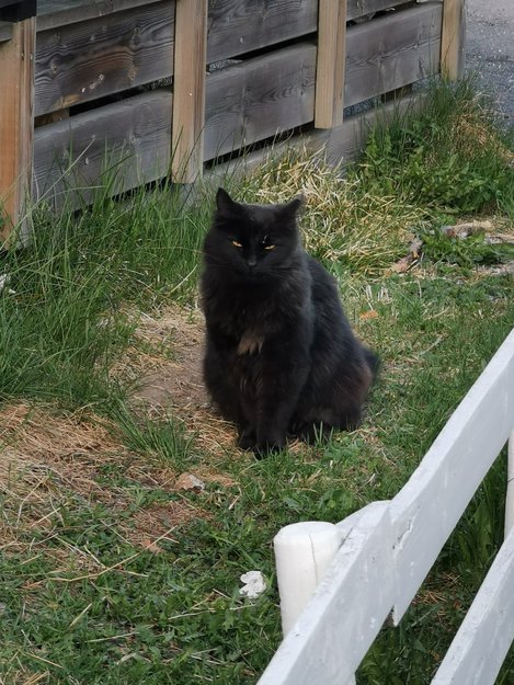 Kommer tilbake tidlig og sent men ingen rier den . Er veldig kontaktsøkende og kosete . Nærmest desperat etter kos . Oppholder seg rundt ski sykehus , boligfeltet bak sykehuset og speiderhytten i skogen der