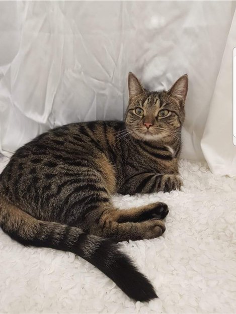 Olivia har rosa snute tupp. Hvit under haka og gylne poter. Kan minne om en Bengal i fargene. Vakre uttrykksfulle øyne.