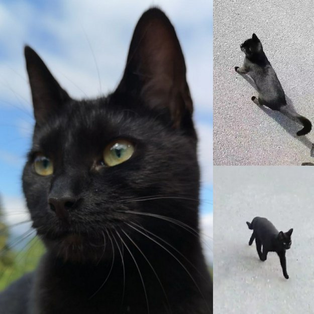 My har kort, glatt, skinnende og helt svart pels. Svarte flekker i ganen og svarte poter.