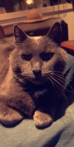 14 år, mørkegrå i pelsen og grønne øyne. Kan se "sinna" ut, men er verdens største koseklump. Supersosial og ikke redd for å nærme seg mennesker. Lyder navnet Tigergutt. Han er ikke en mjauer. Kommer en sjelden gang et ynkelt pip av han.