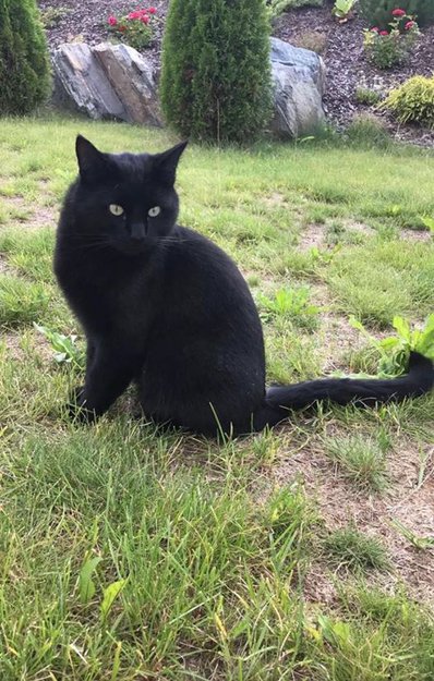 Kenai er en svart, kastrert hannkatt, ca. 3 år gammel.