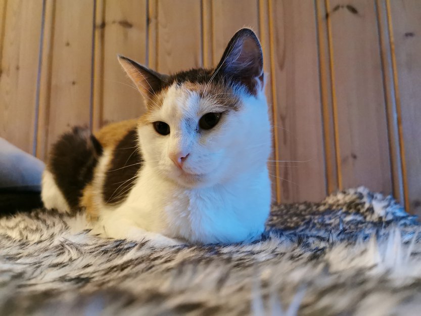 Hun var nyinnflyttet og begynte å ta seg til ro da hun en dag var ute og ble skremt bort av noe, som vi antar har skjedd da det var en aggressiv nabokatt mot vår andre katt samme kvelden.