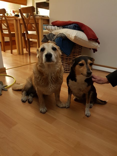 På bilde er det hunden til høyre. Virker som de er vokst opp sammen.