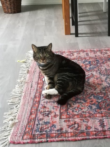 Hun ble funnet innelåst i en garasje i nabolaget. Vi hadde sjekket der tidligere, men da gjemte hun seg. Når vi sjekket igjen kom hun fram til slutt, men var veldig redd og sky.
