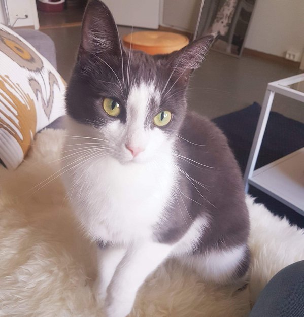 3 år gammel grå/hvit hunnkatt er savnet. Sluppet ut som vanlig torsdags morgen 11/6, men er ikke sett siden. Er svært menneskesky.
