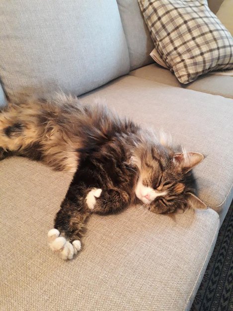Hunnkatt, tricolor, har slått seg ned hos to familier på Vågard.