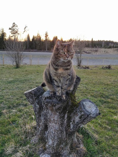 Nabo ringte da de hadde observert katten. Det hadde blitt satt ut mat da det er flere katter der.