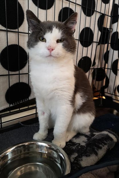 Korthåret, grå og hvit hannkatt observert lengre tid i Knappholen på Bryn før han ble tatt inn. Kastrert. Ta kontakt på nord-jaeren@dyrebeskyttelsen.no hvis du kjenner katten.