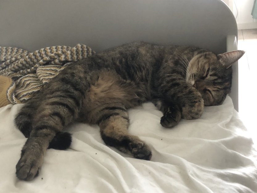 Hun kom slepende hjem etter nesten fire uker, tynn, utsultet og veldig hes- har mest sannsynlig vært innestengt i en garasje eller bod.