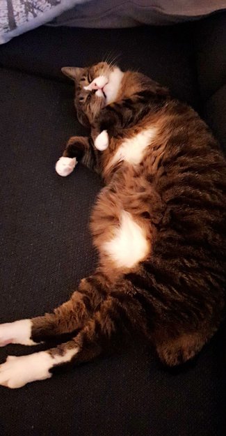 Linebaby er en 16-åring gammel dame. Men hun er pigg og rask. Hun har en stuphale, altså en halv hale.