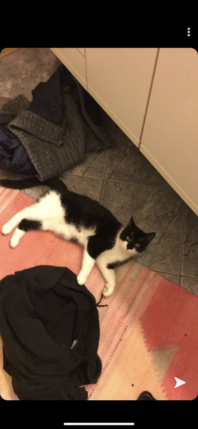 Liten pus som er 1 år, han skjeler litt med øynene noen ganger og han er veldig snill☺️