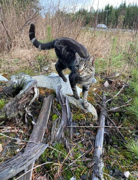 Etter 4 uker var han ute på verandaen en kveld men løp unna når vi åpnet døra og er ikke sett etterpå.