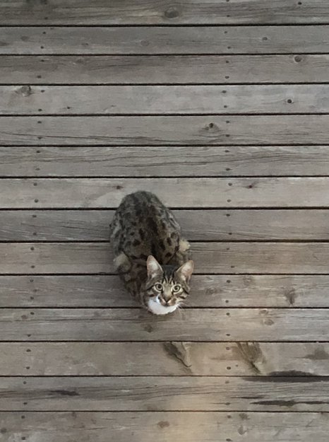 Denne katten har kommet til huset vårt flere ganger nå, og virker veldig sulten. Vi har katter selv, og de er ikke så fornøyde med denne stakkaren som kommer inn å spiser maten deres. Vi vet ikke om han har et hjem eller ei, men han er blitt tynnere den siste uken.
