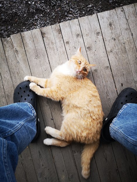 Den er her veldig ofte, igår gjennom hele natten antageligvis. Den har vært her noen månder av og på. Ser ut til å ha blitt slankere. Veldig fin og kosete katt.