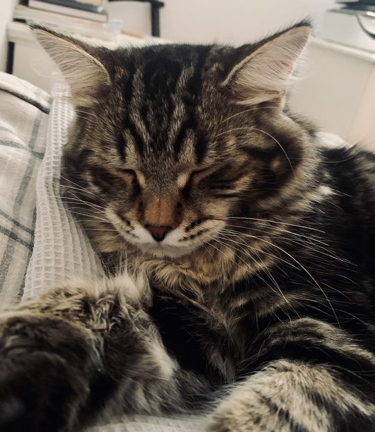 Veldig sosial, kosete liten pus, 7mnd. Den går gjerne inn i andres hus og er veldig tillitsfull.