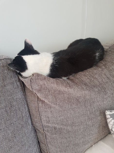 Er svar og hvit katt med helhvit nakke som kjennetegn.