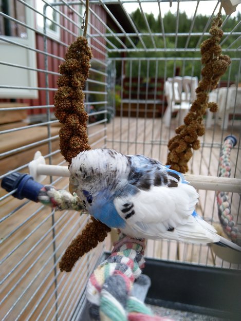 Min nabo fant denne undulaten. Den kom seg raskt og er nå klar for å gjenforenes med sin eier.